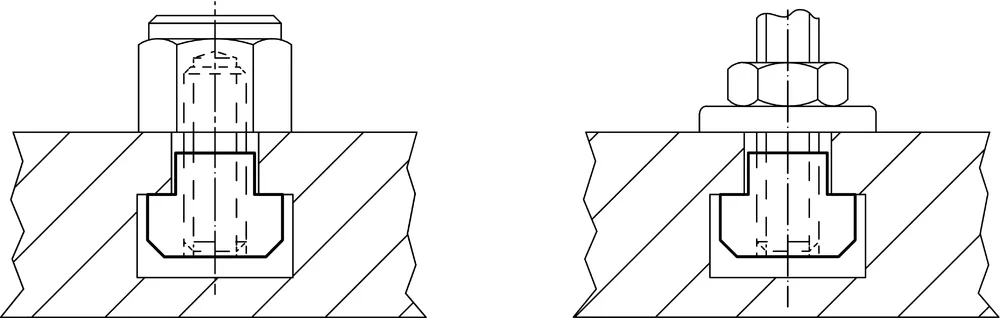 T-kanalları için bu somunlar (kanal somunları) DIN 508'e göre üretilmektedir. Ürün yelpazesi, DIN'de yer almayan diğer boyutlarla genişletilmektedir.