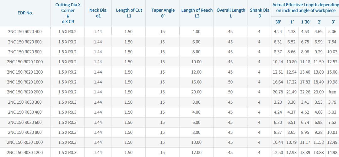 2 AĞIZLI 2NC Ø1.5 MM KÖŞE RADIUS DALMA BOYLU KARBÜR FREZE
