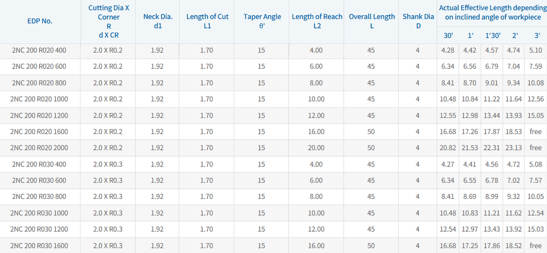 2 AĞIZLI 2NC Ø2.0 MM KÖŞE RADIUS DALMA BOYLU KARBÜR FREZE