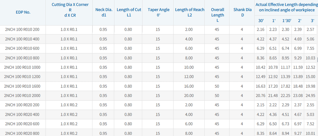 2 AĞIZLI 2NCH Ø1.0 MM KÖŞE RADIUS DALMA BOYLU KARBÜR FREZE