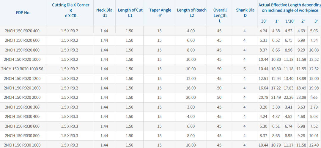 2 AĞIZLI 2NCH Ø1.5 MM KÖŞE RADIUS DALMA BOYLU KARBÜR FREZE