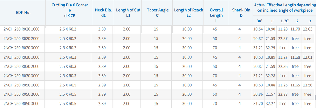 2 AĞIZLI 2NCH Ø2.5 MM KÖŞE RADIUS DALMA BOYLU KARBÜR FREZE