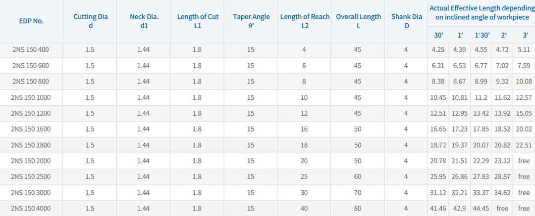 2 AĞIZLI 2NS Ø1.5 MM DÜZ DALMA BOYLU KARBÜR FREZE