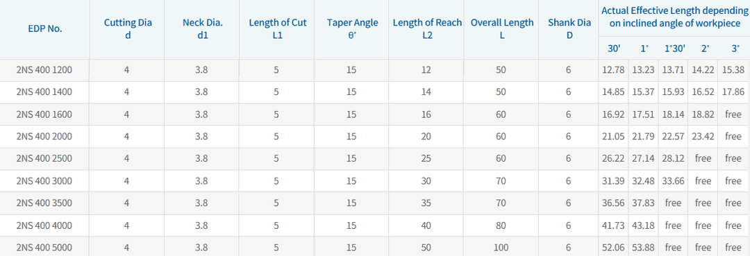 2 AĞIZLI 2NS Ø4.0 MM DÜZ DALMA BOYLU KARBÜR FREZE